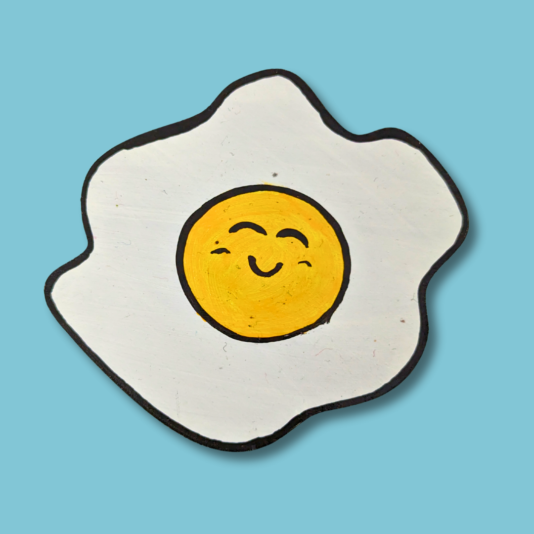 Charming hand-painted fried egg fridge magnet brings a sunny side to your kitchen decor. Perfect for breakfast enthusiasts and egg lovers.